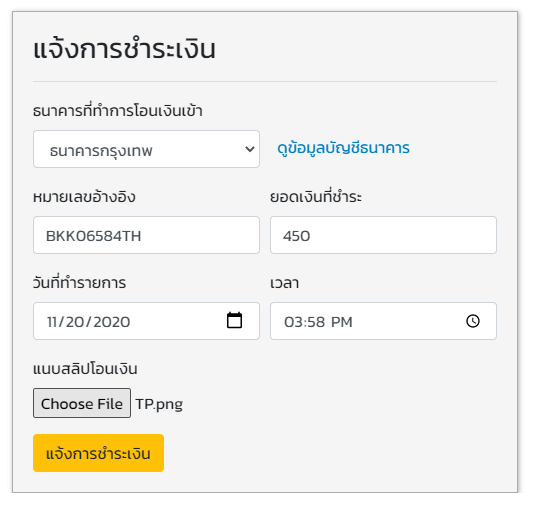 หลังจากนั้นคลิกที่ปุ่ม สมัครสมาชิก ระบบจะแสดง pop-up แจ้งให้ทราบว่าสมัครสมาชิกเรียบร้อยแล้ว
